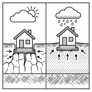 Schrumpfen und Quellen von Lehmböden (Quellton)