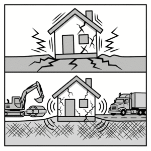 Seismische Vibrationen, die oft mit tektonischen Aktivitäten zusammenhängen, üben Druck auf die Fundamente aus und erhöhen das Rissrisiko.